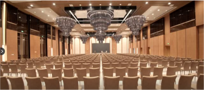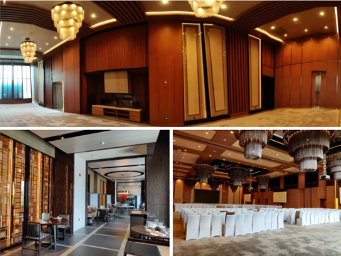 主題為“絲綢之路”的小宴會廳位於酒店一樓,可分合式的宴會廳,能夠根據使用需求任意組合布置,滿足餐飲、會議、宴會等多種場景。現在的擴聲係統采用EV 8寸吸頂,由AEV的DPA係列內置DSP數字功放以定阻模式驅動。投影采用EPSON高清激光投影機,根據安裝位置更換的不同的鏡頭,達到投影的最佳效果。