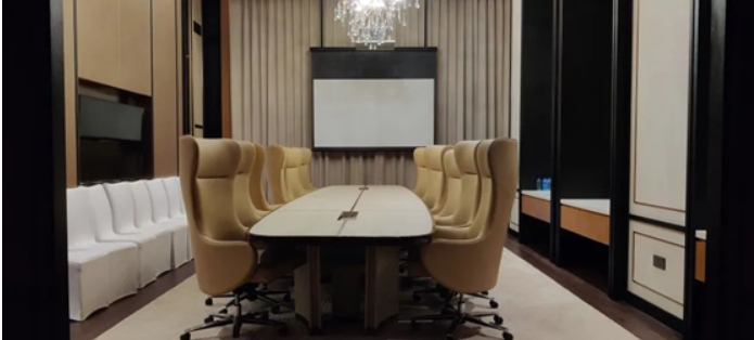 酒店一樓設有大會議室一間、小會議室兩間、董事會議室一間。擴聲采用了EV 6.5寸二分頻吸頂音箱,與Dynacord 數字係列功放,Roland數字調音台組合的音頻係統,滿足本地會議和遠程會議的使用。會議室的視頻設備均采用了EPSON係列高清工程投影機,高分辨率、低失真、低色差、高透光率等出色的性能,將色彩還原到極致。