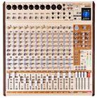 16路小型調音台,10路麥克風/4組立體聲輸入,可用PC和MAC電腦連接的立體聲USB音頻接口 (24-bit, 48 KHz),內置SD卡錄播及2.4G藍牙連接功能,4編組,可選機架安裝組件(另購)。四個4段EQ立體聲通道(兩個帶有XLR輸入),3段EQ(單聲道),32/40位DFX處理器,處理器有16個程序,每個程序都有一個用戶可調參數,單聲道75HZ低切濾波器,4個立體聲AUX返回,效果可監視,具有INSERT和DIRECT OUT輸出,20級立體電平表。